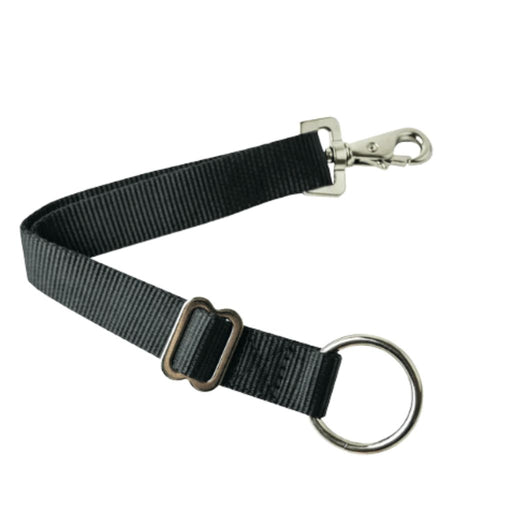 Your standard adjustable 1" nylon web tie strap Panic snap at one end, regular snap at the other. Adjusts from 40" to 75". Sold in pairs.
