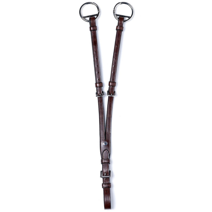 The TRUST Helsinki martingale fork can be adjusted in three places for the perfect size. The fork is open and matches TRUST breastplates. The attachment strap for the saddle has a roller buckle meaning it is easy to attach to the breastplate.