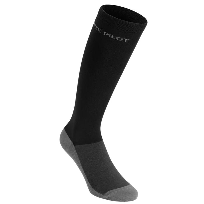 The Aero Socks are the thinnest socks in the Horse Pilot line. Finely knitted, they slip on like a knee sock. The foot is reinforced for greater comfort in your boots. Sold in a pack of two pairs of socks.