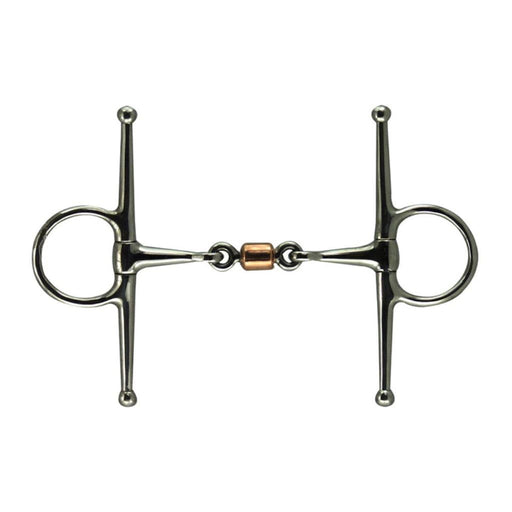 The two mouthpieces are joined with a central ring that carries copper keys, or dangles. These are thought to encourage interest in the bit with mo...