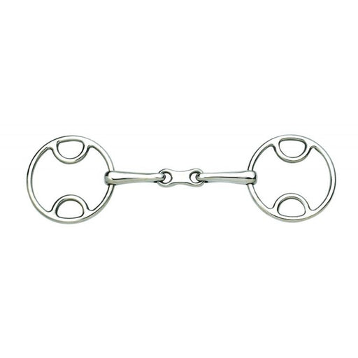 Double jointed with peanut link, this training bit is mild and provides lots of movement.