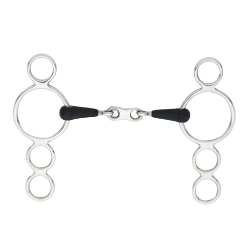 This bit has a gag action. It is an hybrid of the 3 ring bit and the German 3 ring bit. This bit can be used with reins fixedly attached on the bo...