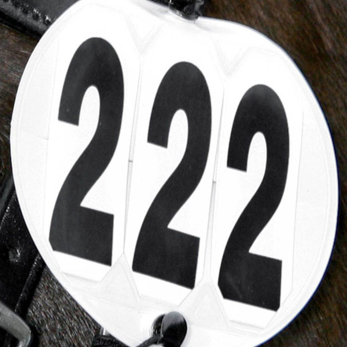 Head numbers in soft synthetic material, without edges for the sensitive horse"s head. Easy changing of competition number. Adjustable from 1-999. Incl. rubber bands for attaching. Pair.