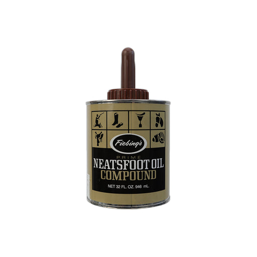 Fiebing's 100% pure neatsfoot oil. The natural preservative for leather articles subjected to rugged use and exposure. 473 ml.