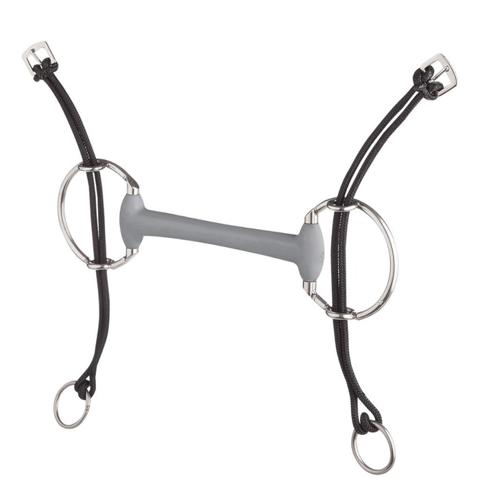The eggbutt bar is a universally used mouthpiece. It sits very quietly in the horses mouth and the "olives" at each side effectively prevent pinching of the lips. Increased pressure from the second rein on the gag causes the bit to rotate and lifts the bit in the mouth, which results in a stronger effect. Very useful on horses that tend to lean on the bit. Can also be used to produce more elevation in the horse.