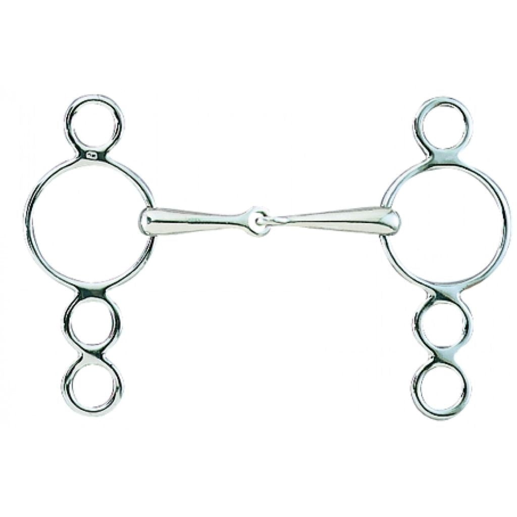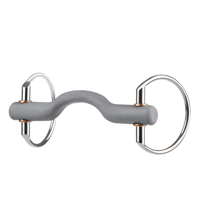 This ported bar has an flattened port design. This gives the tongue optimum room. Many horses respond to this with more relaxation and increased chewing. This bit is also well suited to horses that play with their tongues, trying to put their tongue over the bit, as the port prevents this effectively. Therefore, this bit is suited to horses that don’t like conventionally shaped bits due to the pressure on the tongue and respond with head-shaking. The shaped transition from the mouthpiece to the bit rings makes pinching of the lips impossible and also provides the bit with a particularly stable lateral hold. The shape of the bit is well suited to working with young horses.