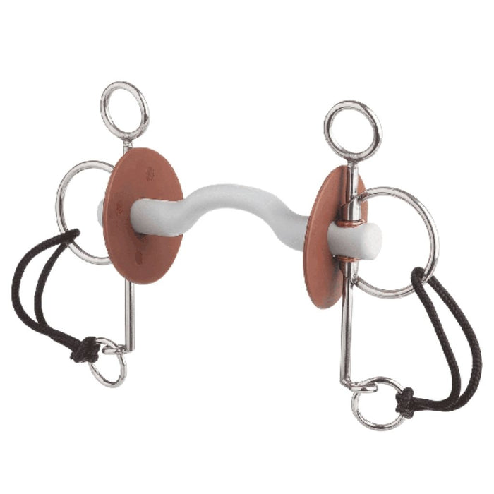 - The tongue port bar has an especially flattened shape to the port. This gives the tongue optimum room. Many horses respond to this with improved suppleness and increased chewing. This bit is also very well suited to horses that play with their tongues, trying to get their tongue over the bit, as the port effectively prevents this. This mouthpiece is thus eminently suited to horses that do not tolerate traditionally shaped bits due to the pressure on the tongue and react by head-shaking or similar. The Pelham- a classic bit, now in our more elegant and enhanced design. When the reins are applied, the bit acts on the mouth, lower jaw and poll. Depending on lever length of the shanks (5 cm or 7.5 cm), a varying strength and direct bit angulation in the mouth is achievable. Potential use on horses that have difficulties coming through at the poll, "hot" horses, or on horses that need significant input in critical situations (such as jump offs or similar). The Pelham is supplied with curb hooks.
