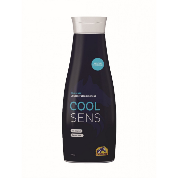 Cavalor Coolsens is a concentrated liniment containing a ixture of essential oils used to wash, refresh and cool the horse?s body, muscles and legs. Dilute with cool water to the desired concentration. Apply to the horse?s body with a sponge focusing on the back and legs. Do not rinse the horse, simply use sweat scraper until they are no longer dripping water.