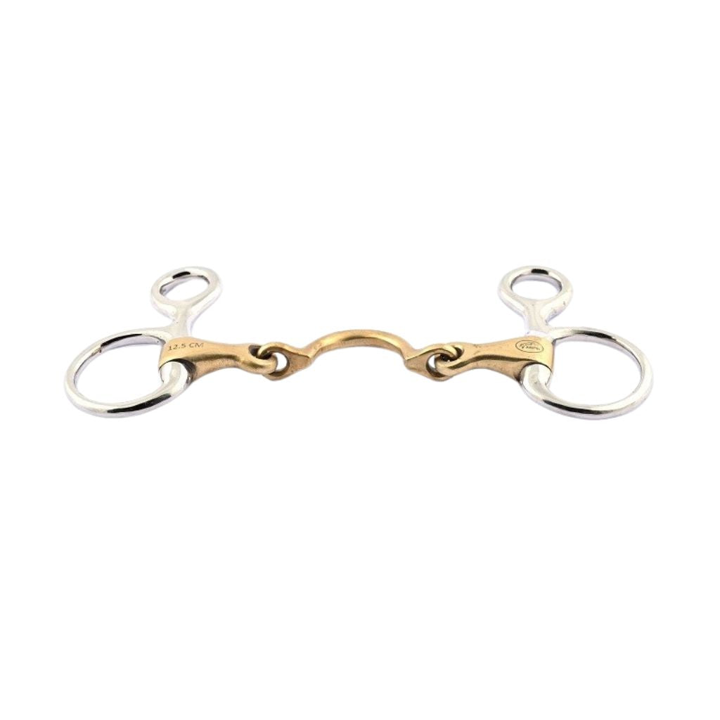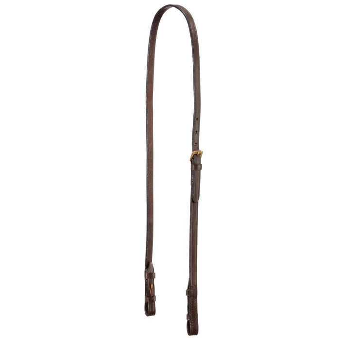Dyon double bridle adaptable cheek pieces. Adjustable strap with two stud closures to add a bit to any type of bridle. Cream stitching and brass buckles. Available in black or brown, three sizes: pony, cob, and full.