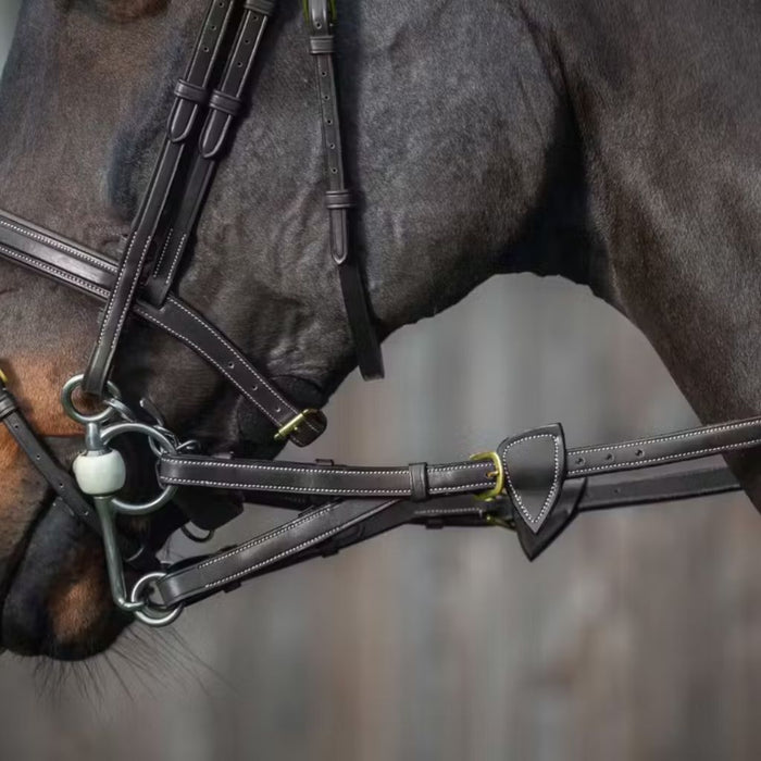 Leather "Focus" cheek pieces comes in a pair. Two velcro straps fix the blinkers onto the check pieces. 3 cm projection from the horse's face. FEI...