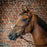 - Slightly square- raised browband and noseband with cream decorative topstitching