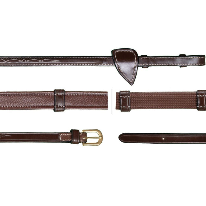 5/8 Hunter Reins With 7 Leather Loops with Dy'on stoppers and compatible with all bridles and double bridles of the D Collection, cream stitching and brass buckles.