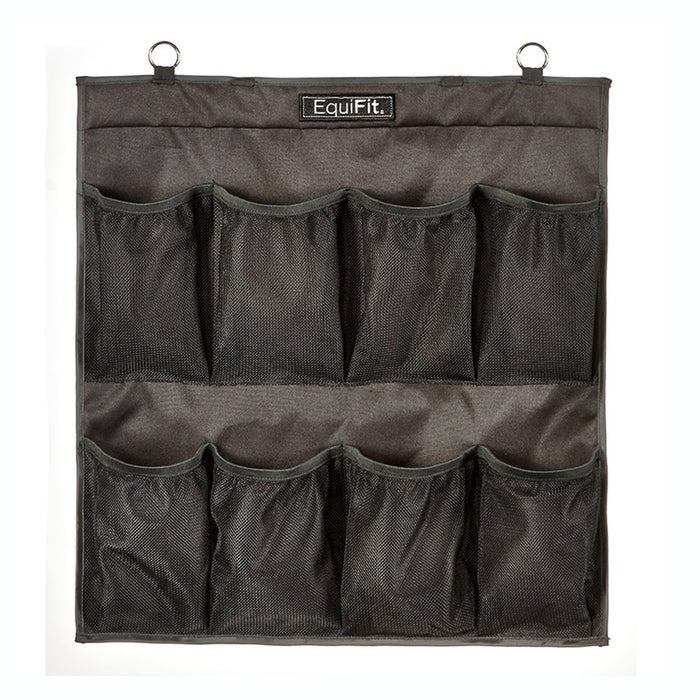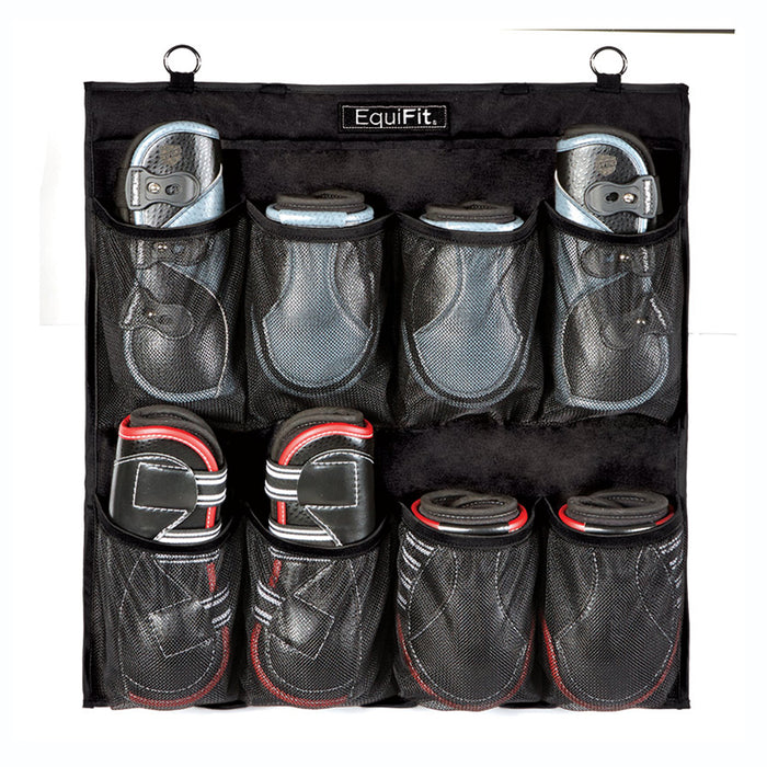 Hanging Boot Organizer provides easy and convenient storage for horse boots and equipment. Perfect for use at home or at shows, The Hanging Boot Organizer keeps important equipment safely stored, and easily accessible. The mesh material makes boots easily visible in each pocket. It also provides airflow and breathability, allowing boots to dry and stay funk-free. Two sizes make the Hanging Boot Organized ideal for large barns with multiple sets of boots, or for an individual. Comes with stainless steel rings for hanging.