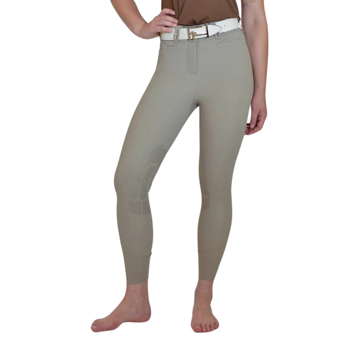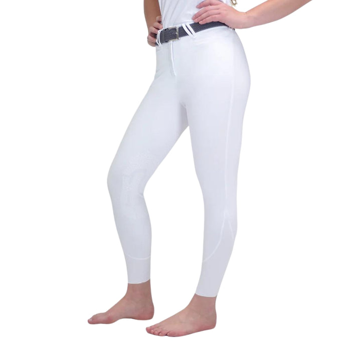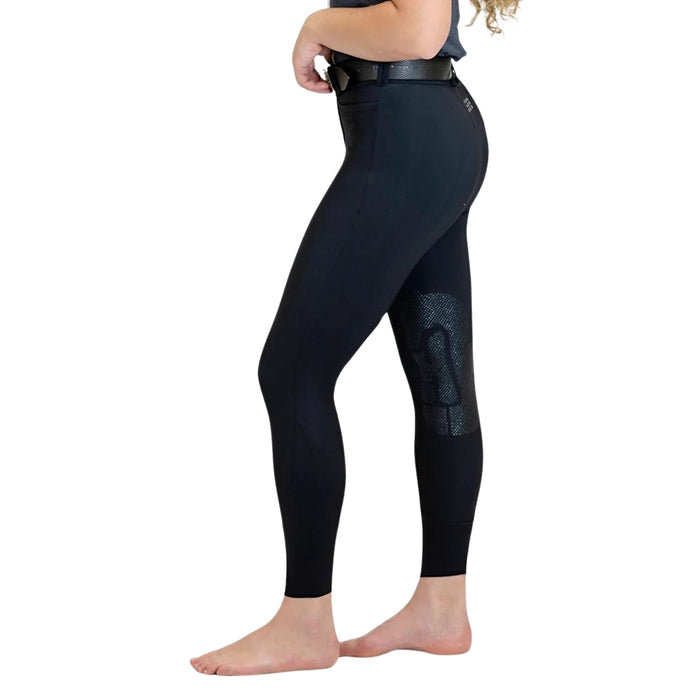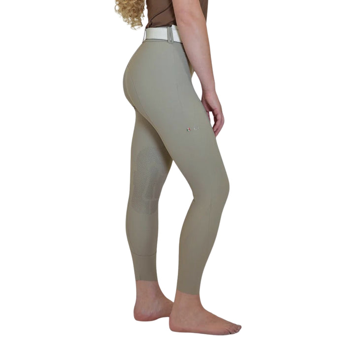 The For horses RITA breeches are a classic model with a high rise waistline and smooth back, flattering for all shapes and sizes. The uniquely tailored waistband allows for a comfortable fit, support and refined feminine look. RITA is made using a durable and resistant fabric that is breathable, moisture wicking and multi-stretch for complete ease of movement while riding. The long-lasting knee grip is shaped in an original FH stylized horse design, without seams for added comfort and closeness in the saddle.