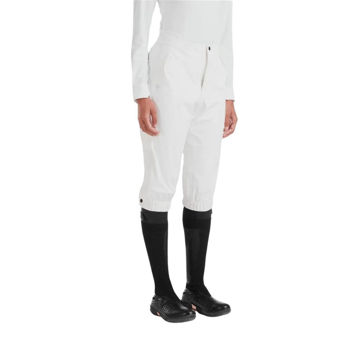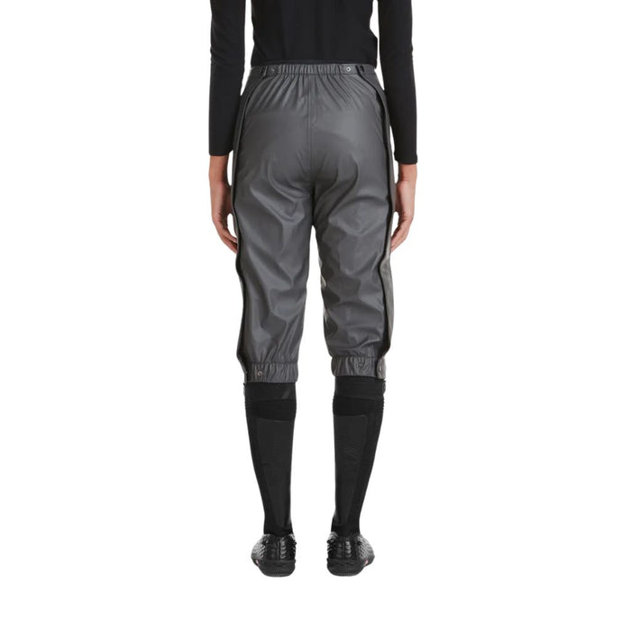 The surface of the material is fully coated, making it highly waterproof and windproof. The structure is supple and stretchy for total freedom of movement when riding. All the seams are waterproofed and the zippers are covered with a protective flap to limit water infiltration, making the trousers even more waterproof. Designed to be worn over your riding trousers: regular fit, elastic and adjustable waist and leg cuffs, two large side zippers to pull them on quickly and easily. The eco-friendly fabric is OEKO-TEX® Standard 100 certified, and the DWR C0 water-repellent treatment is PFC (fluorocarbon) free.