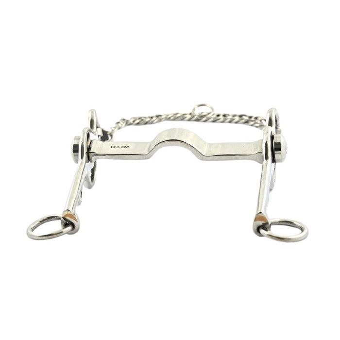 The Pelham bit is a great compromise between the bridle and the double bridle. It offers a lever action more or less strong depending on the cheeks length, the curb chain adjustment and how it is assembled. This bit encourages the horse give in in the neck and exercises pressure on the mandibles.
