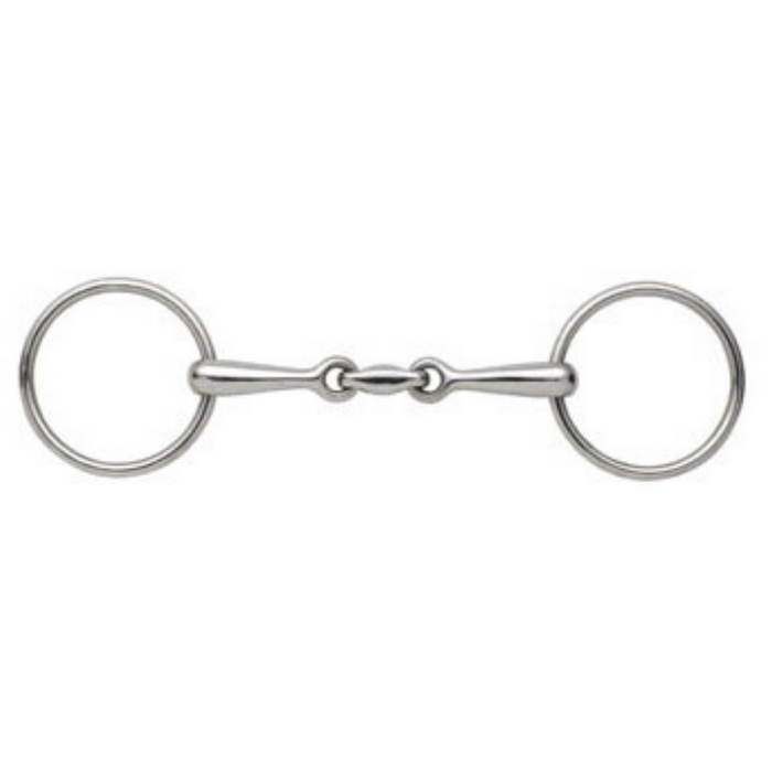 Double jointed with peanut link, this training bit is mild and provides lots of movement.