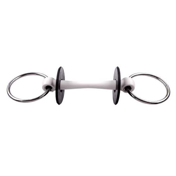 The Loose Ring has loose rings that move freely through the mouthpiece. Because of this, rein aids are conveyed less directly than when the rings are attached to the mouthpiece. To prevent skin from getting pinched between the moving rings, it is advised to use rubber bit rings.