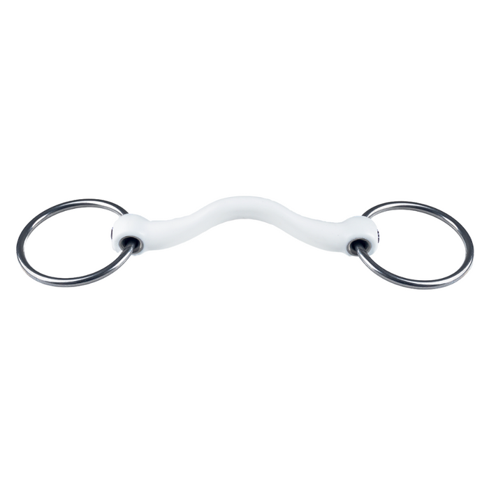 The Loose Ring has loose rings that move freely through the mouthpiece. Because of this, rein aids are conveyed less directly than when the rings are attached to the mouthpiece. To prevent skin from getting pinched between the moving rings, it is advised to use rubber bit rings.