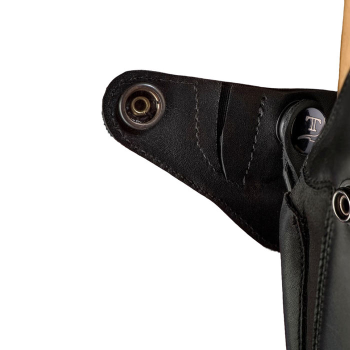 Leather "Focus" cheek pieces comes in a pair. Two velcro straps fix the blinkers onto the check pieces. 3 cm projection from the horse's face. FEI...