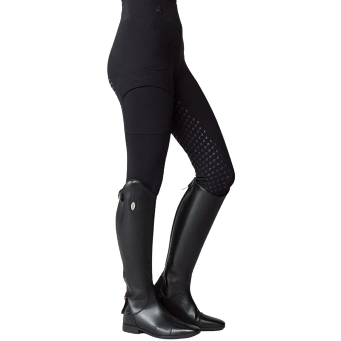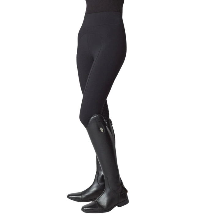 High waist pull-on compression riding breeches built for performance. Sculpting, lightweight, and providing optimal movement for all disciplines. Comfortable as a legging, but still durable like a riding breech. Cut from an exclusive Italian jersey and sewn in Portugal, Europe.