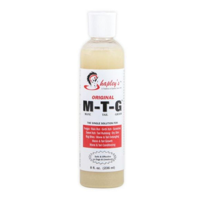 Original M-T-G successfully treats the following conditions: rain rot, dew poisoning, scratches, mud fever, greasy heal, sweet itch, girth itch, itchy skin, dandruff and tail rubbing. It has been touted to work on thrush and white line disease.