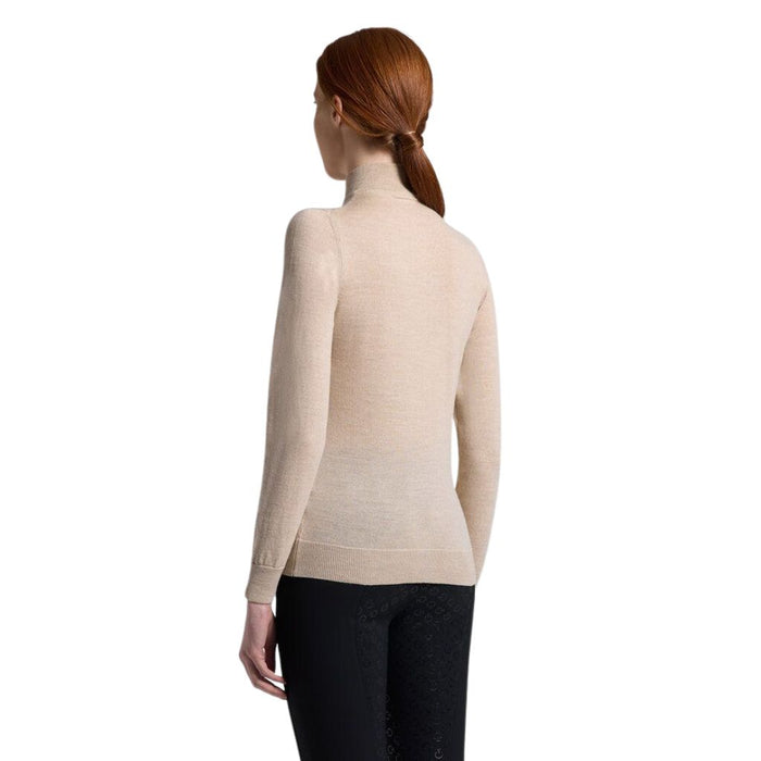 The Cavalleria Toscana women's crew neck sweater, made from 100% merino wool, combines elegance and comfort, making it perfect for cooler days. The fine wool craftsmanship ensures softness and warmth, while the design is enhanced by the CT logo embroidered with fringes, adding a unique and sophisticated touch. The elasticated cuffs and hem guarantee an optimal fit, ideal for leisure or completing a casual-chic look with style.