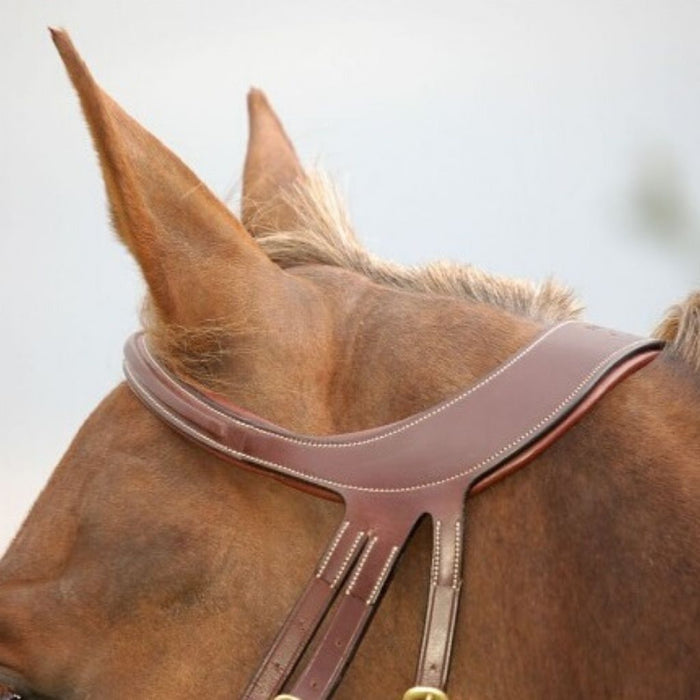 - Crossed throat latches system to keep the headpiece back from the ears