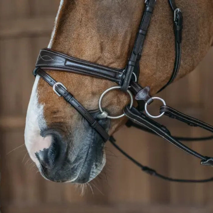 The Working Motion Bridle is part of the Working Collection. The cream stitching, stainless-steel buckles and fancy stitching on the noseband offer a sophisticated look. This bridle is available in brown and black.