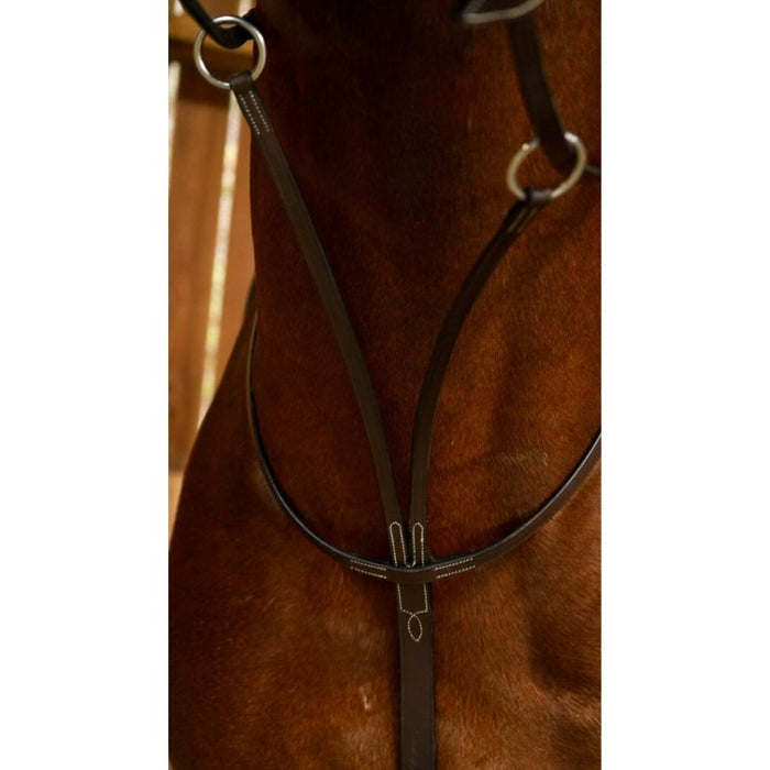 Running Martingale in Flat leather with cream decorative topstitching and silver hardware.