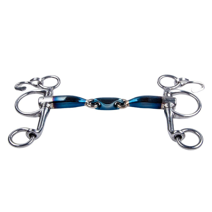 The Elliptical mouthpiece is the first example of a double-jointed mouthpiece with an elliptical shaped link. Due to this shape, the mouthpiece presses a bit more on the middle of the tongue. This mouthpiece has two joints, is shaped more to the form of the mouth and lies in the mouth a bit looser. This bit puts more pressure on the tongue than a single-jointed mouthpiece.