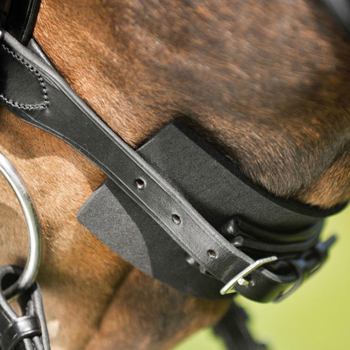 Waldhausen's anti slip close fitting foam chin pad is used under the noseband to spread the pressure of the leatherwork off the horse's jaw.